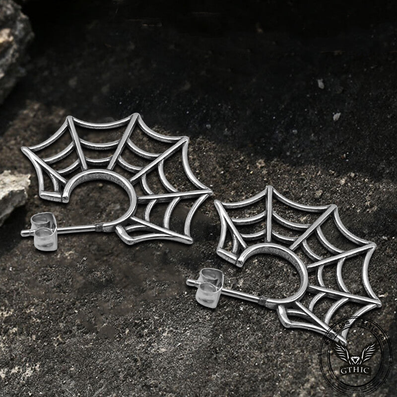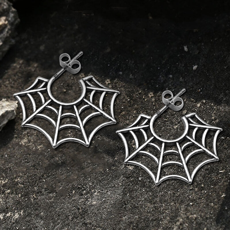 Spider Web Stainless Steel Stud Earrings - Stainless Steel / A Pair is backordered and will ship as soon as it is back in stock.