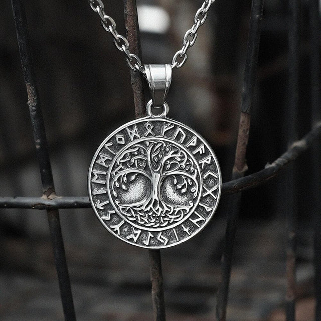 Tree of Life Runes Stainless Steel Viking Pendant