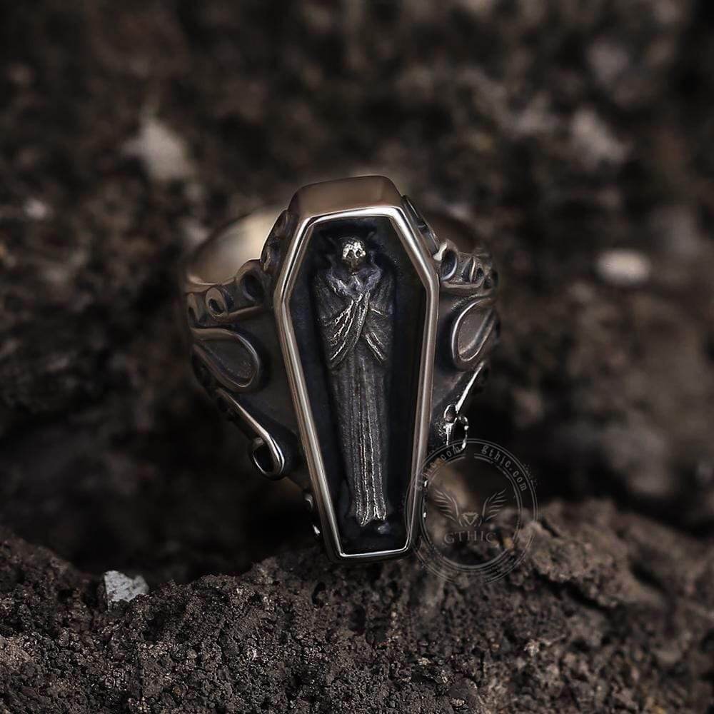 Vampire Coffin Stainless Steel Skull Ring