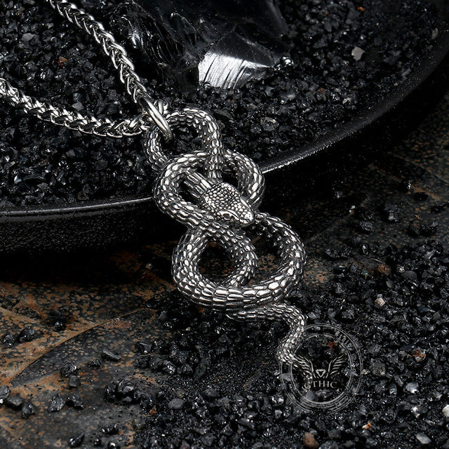 Crafted from high-quality stainless steel, this vintage pendant features a coiled snake design, symbolizing rebirth and transformation. The intricate detailing adds a touch of luxury while the durable material ensures long-lasting wear. Elevate your style with this exclusive piece, perfect for those with a taste for the finer things in life.