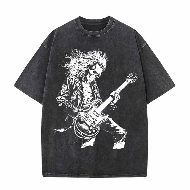 Rock your style with our Vintage Washed Crazy Rock Guitar T-shirt, crafted from premium cotton for unmatched comfort and style. Express your passion for music with the iconic guitar graphic, perfect for casual outings or jam sessions. Elevate your look and showcase your love for rock with this must-have tee.