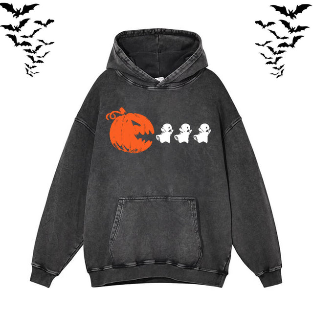 Vintage Washed Pumpkin Eat Ghosts Hoodie Sweatshirt
