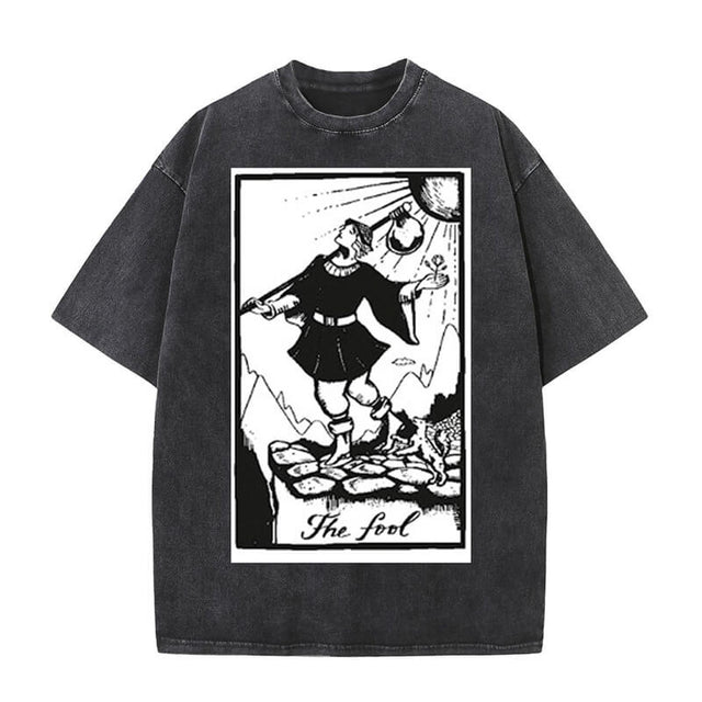 Vintage Washed The Fool Tarot Card Print T-shirt