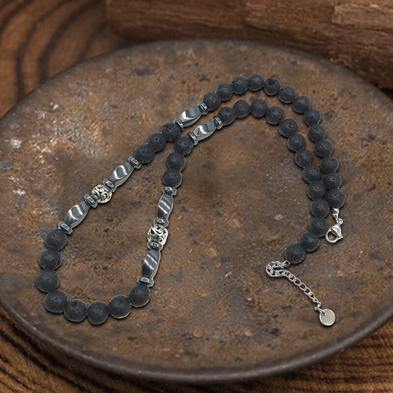Elevate your outfitting game with our stunning beaded necklace, which is made from premium volcanic rock. Each stone has been hand-selected for its unique beauty and character, making it stylish and spiritually meaningful.