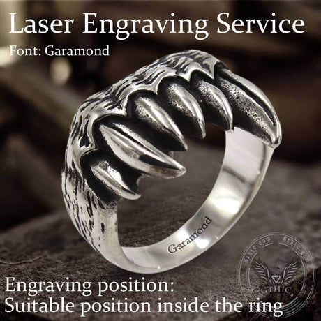 Gothic Dragon Claw Stainless Steel Gem Ring