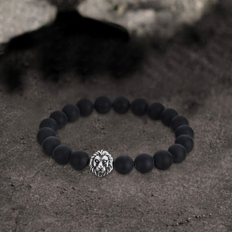 Lion Head Agate Stone Stainless Steel Bead Brac...