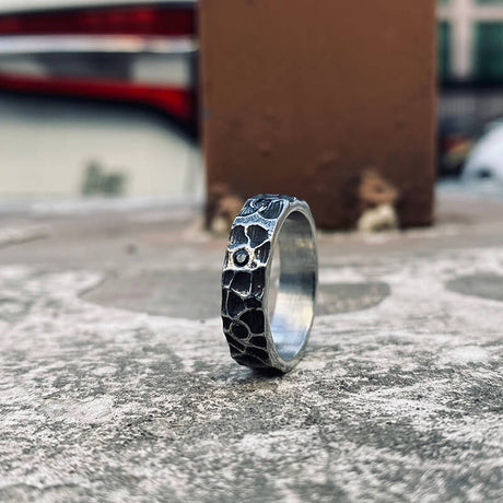 Vintage Hammer Pattern Zircon Inlaid Stainless ...