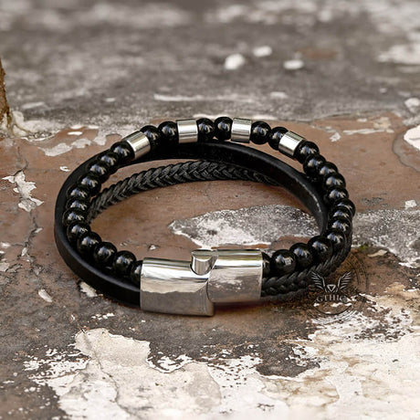 Vintage Multi-Layered Stainless Steel Beaded Br...