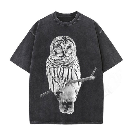 Vintage Owl Print Washed Short Sleeve T-shirt