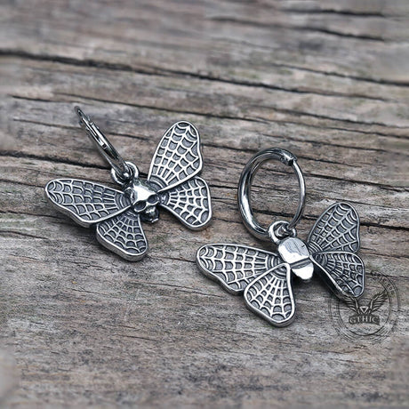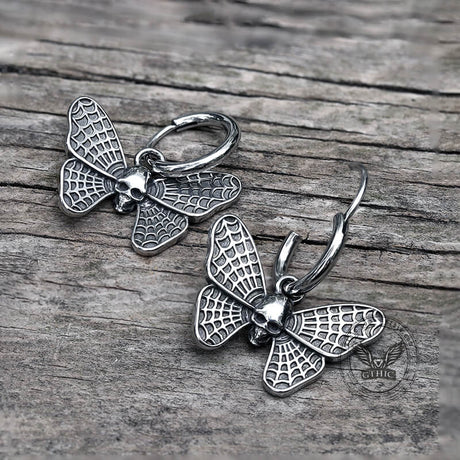 Vintage Butterfly Skull Stainless Steel Hoop Ea...