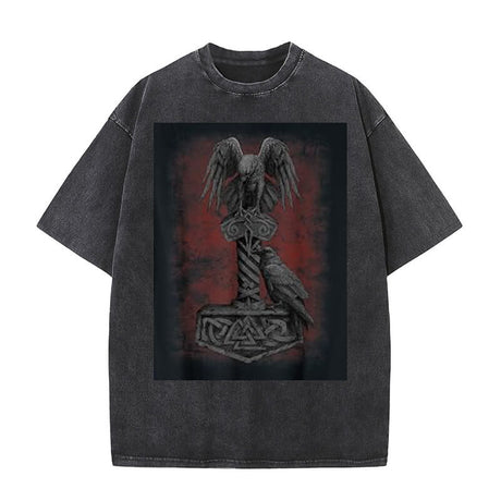 Viking Norse Thor's Mjolnir Raven Washed T-shirt