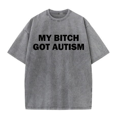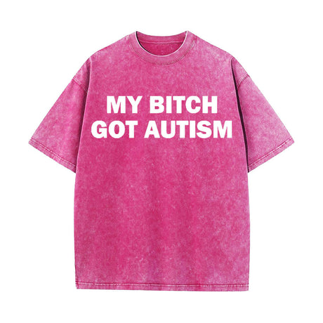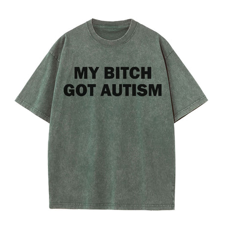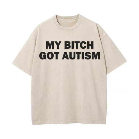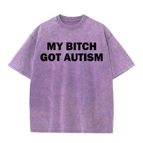Solid Color My Bitch Got Autism Short Sleeve T-...