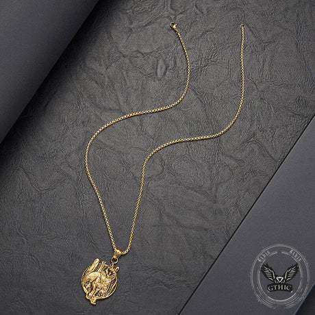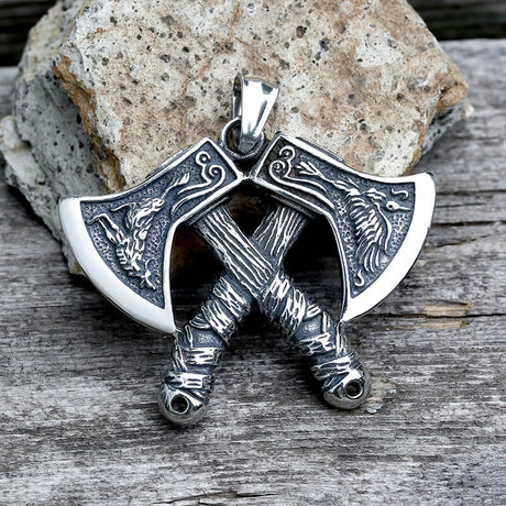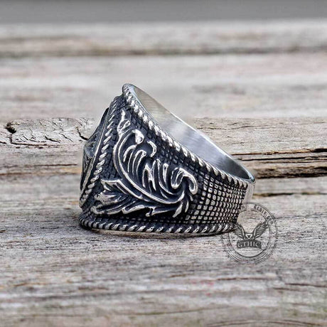 Vintage Nordic Viking Wolf Head Stainless Steel...