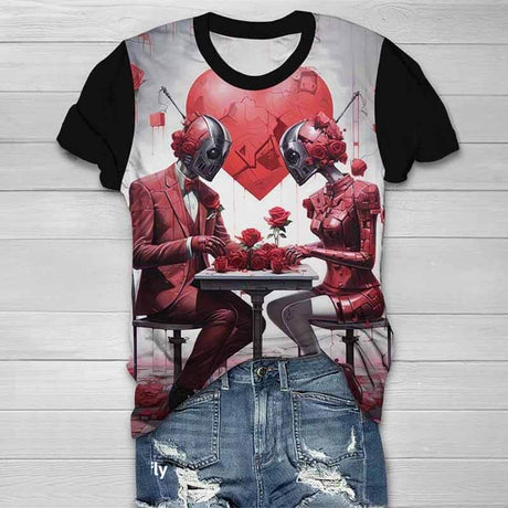 Skull Robot Love Round Neck Short Sleeve T-Shirt