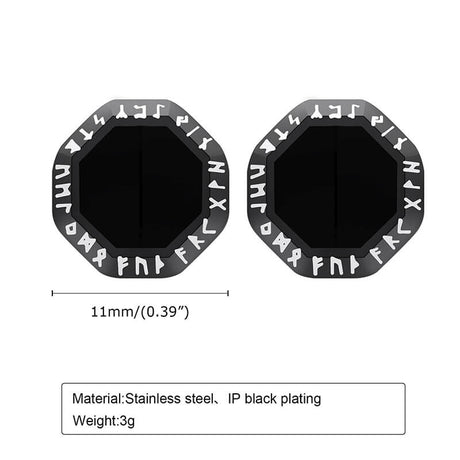 Viking Runes Octagon Stainless Steel Stud Earrings