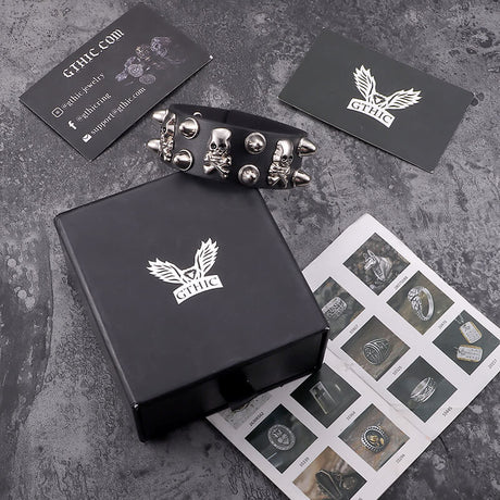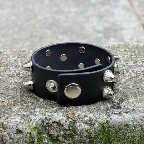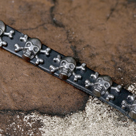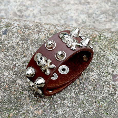 Punk Crossbones Skull Pu Leather Spiked Bracelet