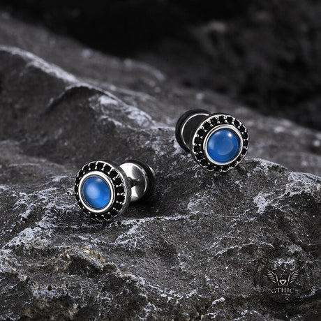 Punk Rock Round Gemstone Stainless Steel Stud E...