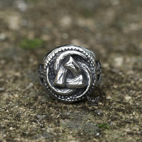 Triskele Horns of Odin Stainless Steel Viking Ring
