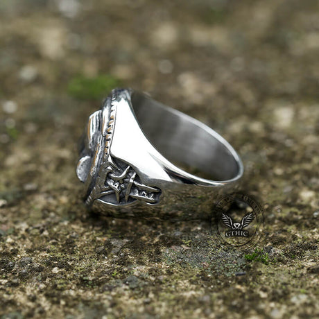 Gothic Vampire Coffin Stainless Steel Cross Ring