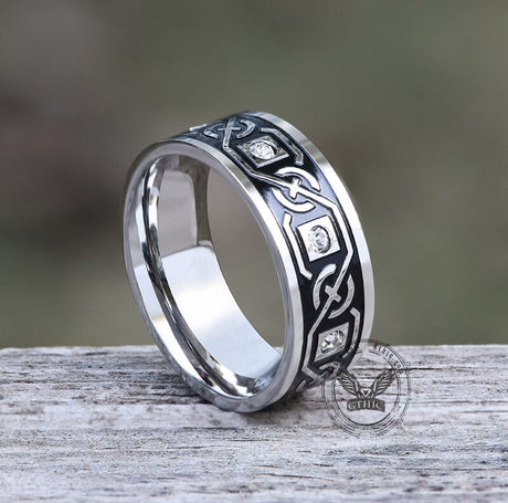 Celtic Knot Gemstone Stainless Steel Viking Ring