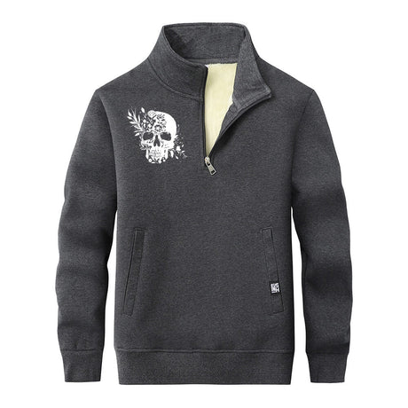 Multicolor Floral Skull Stand Collar Zip Fleece...