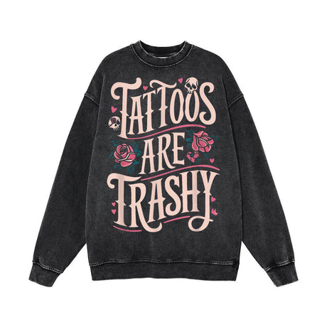 Tattoos Are Trashy Skull Rose Vintage Washed Sw...
