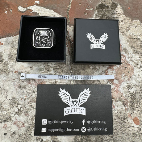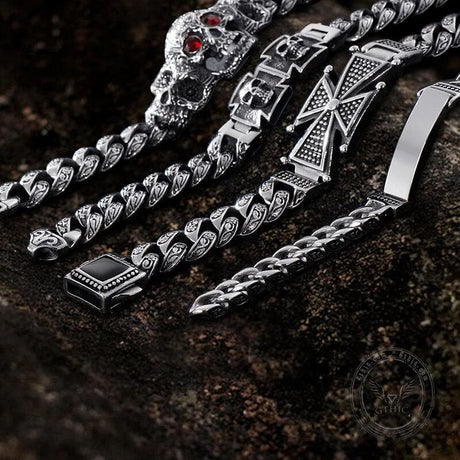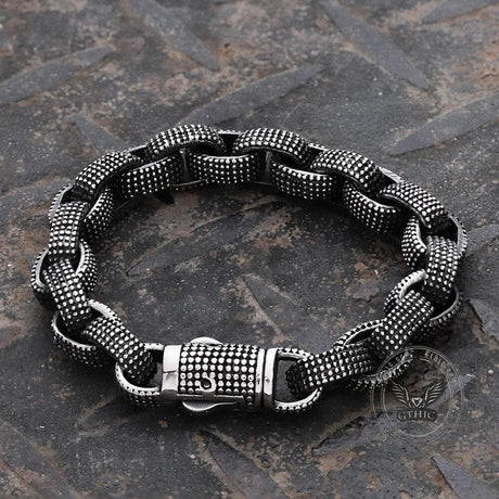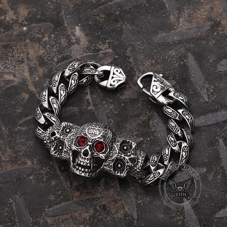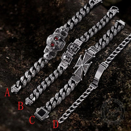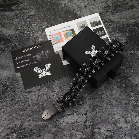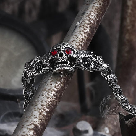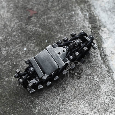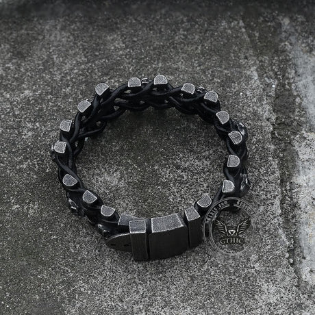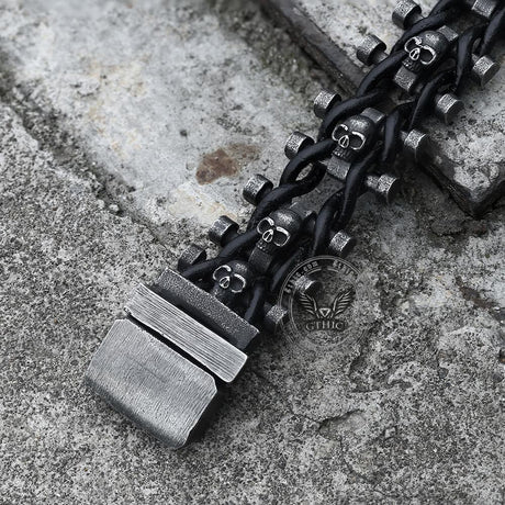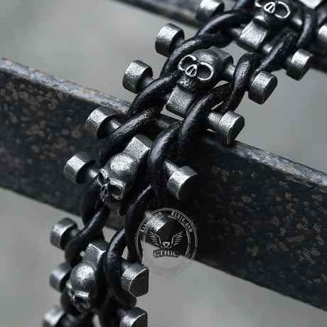 Vintage Woven Leather Stainless Steel Skull Bra...