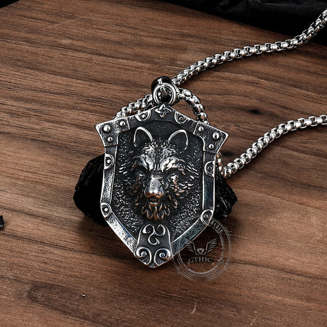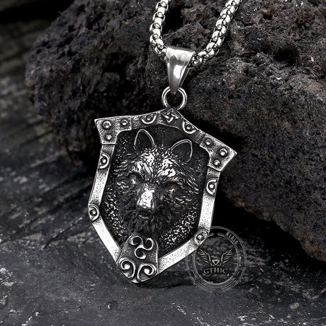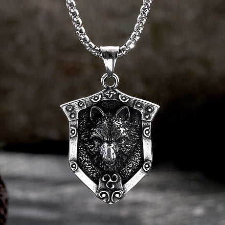 Punk Lion Wolf Shield Stainless Steel Necklace