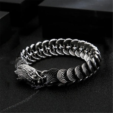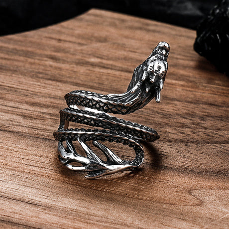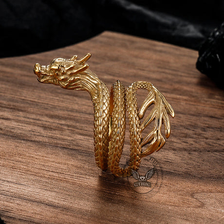 Vintage Coiled Chinese Dragon Stainless Steel Ring