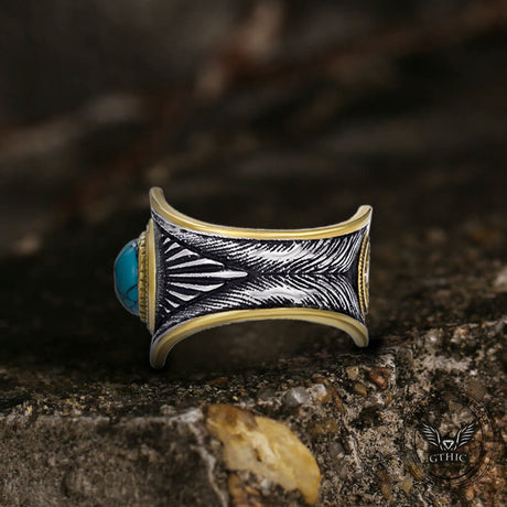 Vintage Feather Inlaid Turquoise Stainless Stee...