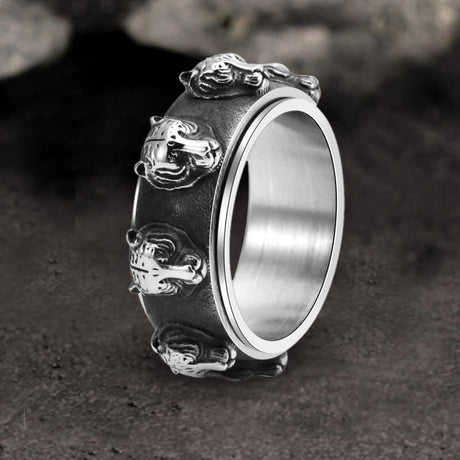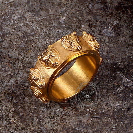 Punk Tiger Head Stainless Steel Spinner Ring