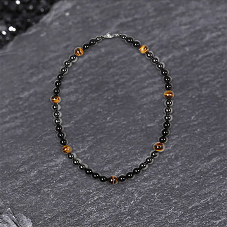 Vintage Tiger Eye Stone Men’s Bead Necklace