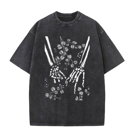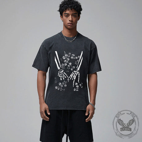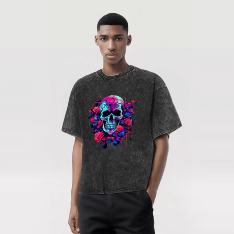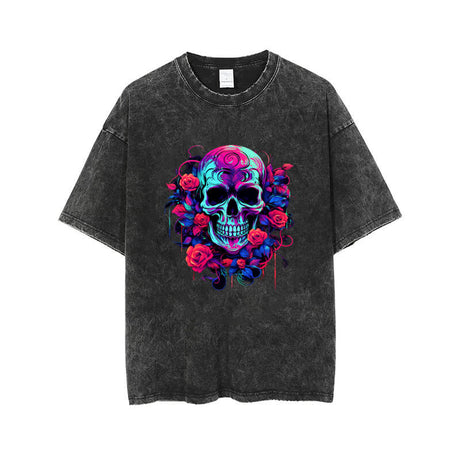 Vintage Washed Flower Skull Print T-shirt