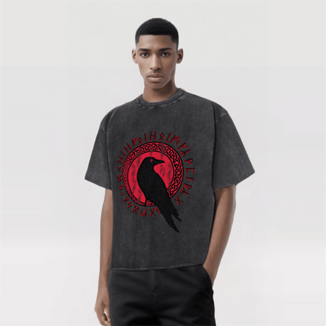 Vintage Washed Viking Raven Runes Knot T-shirt