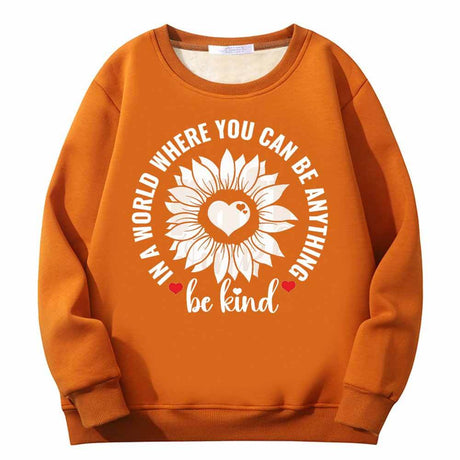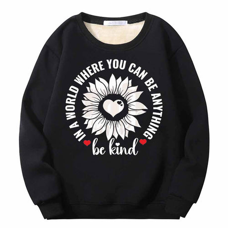 Be Kind Heart Flower Fleece Crew Collar Sweatshirt