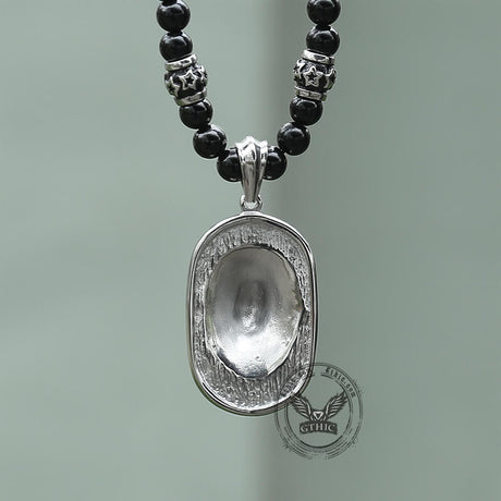 Lion Head Black Beads Chain Stainless Steel Nec...
