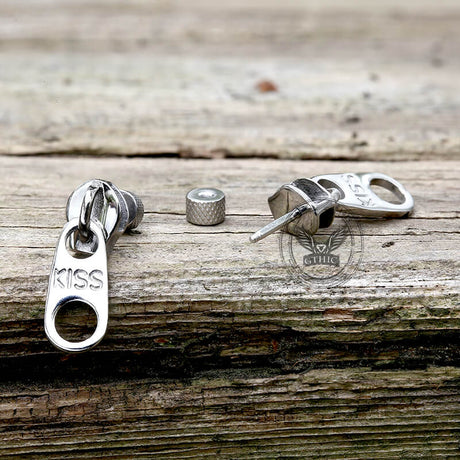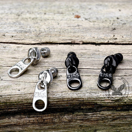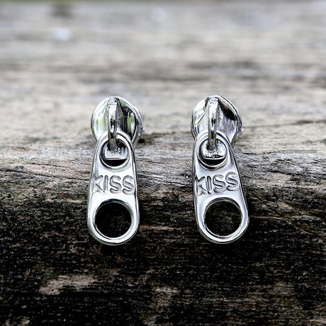 Simple Zipper Kiss Stainless Steel Stud Earrings