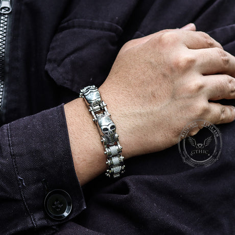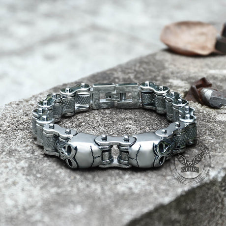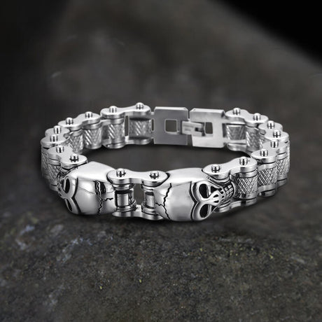 Two Skulls Stainless Steel Biker Bracelet