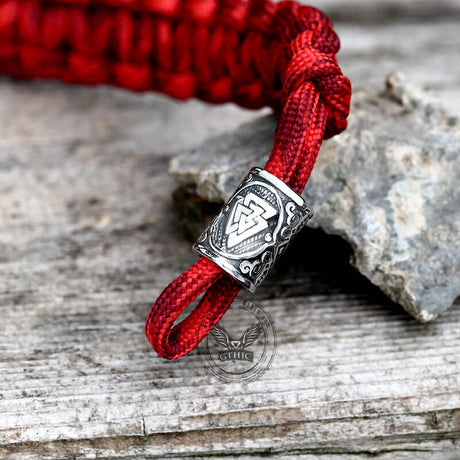 Red Thor’s Hammer Valknut Stainless Steel Parac...