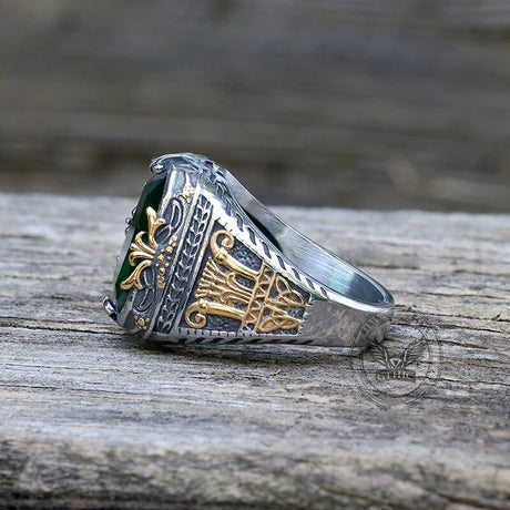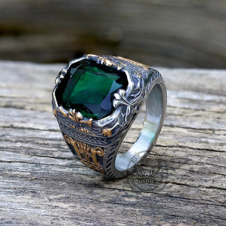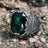 Vintage Patterns Green Zircon Stainless Steel Ring