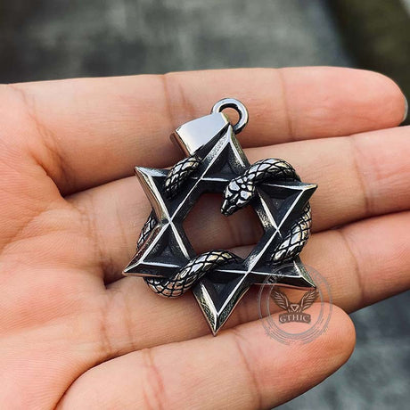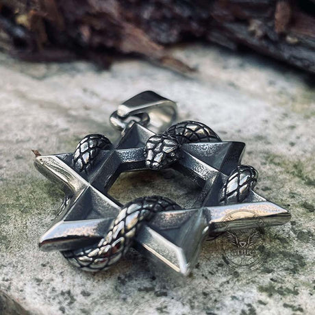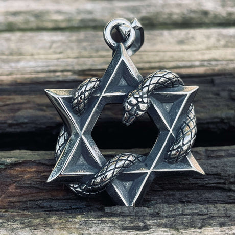 Star Of David Curled Snake Stainless Steel Pendant