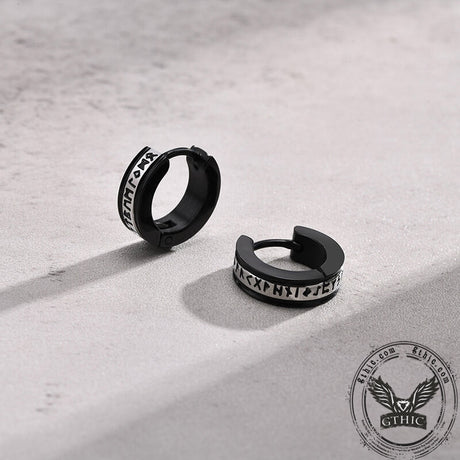 Two-tone Viking Runes Stainless Steel Hoop Earr...