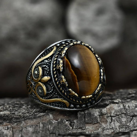 Vintage Pattern Turquoise Tiger-Eye Stainless S...