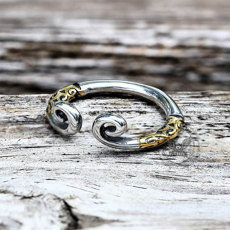 Viking Runes Wolf and Raven Stainless Steel Ring