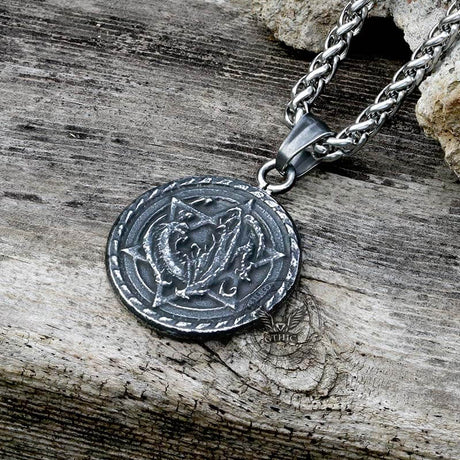 Heart-shaped Fenrir Wolf Stainless Steel Viking...