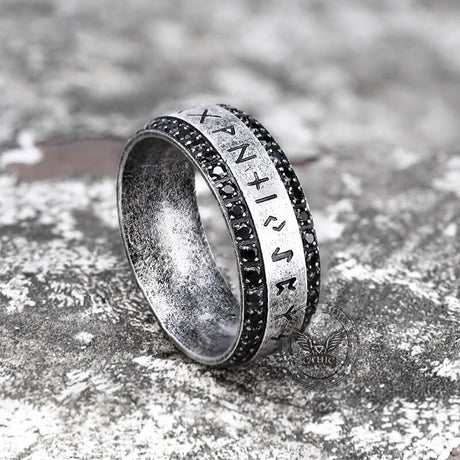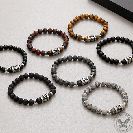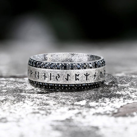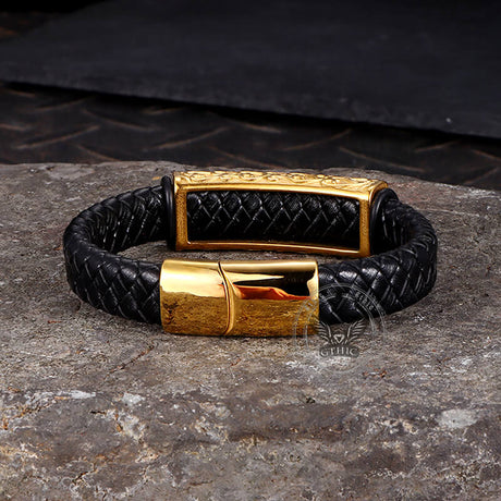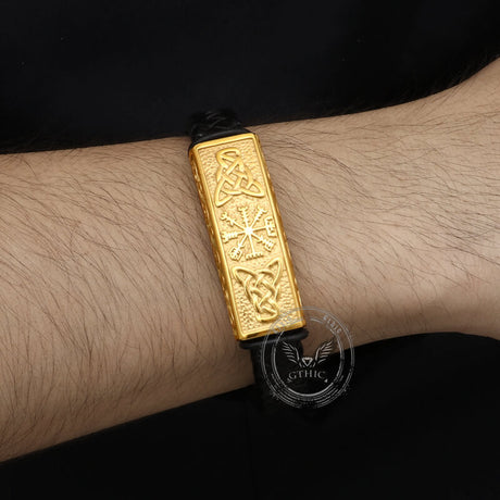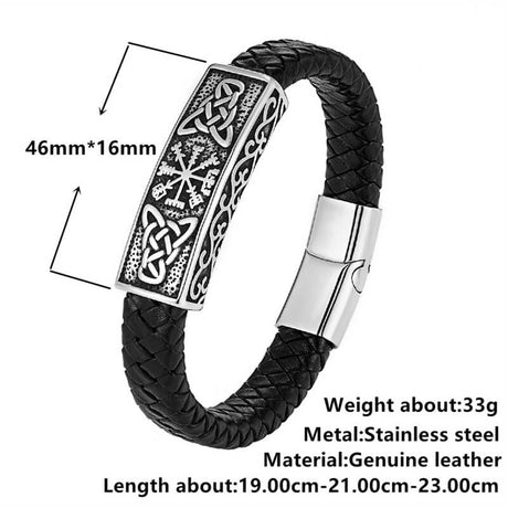 Vintage Viking Rune Stainless Steel Leather Bra...
