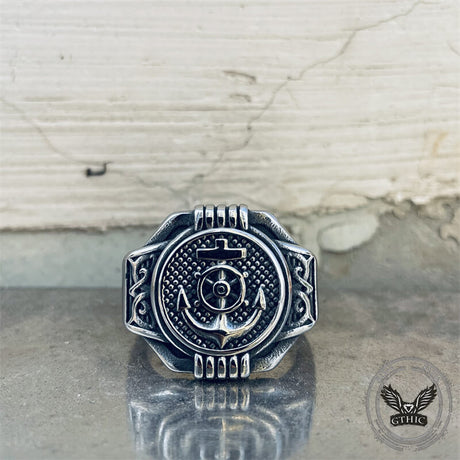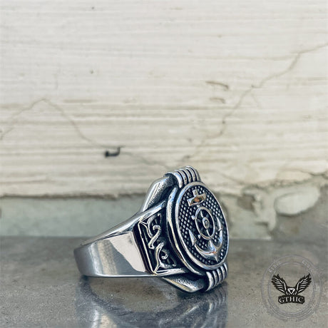 Vintage Compass Anchor Stainless Steel Marine Ring