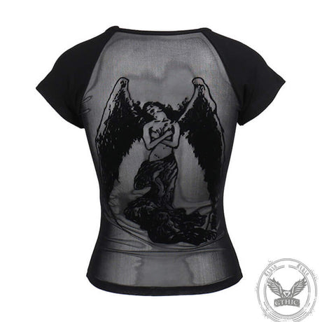 Women's Dark-style Mesh Flocking Printed T-shirt