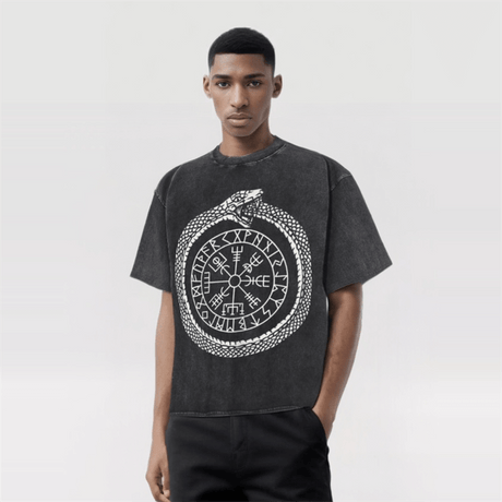 Vintage Washed Ouroboros Runes Viking T-shirt