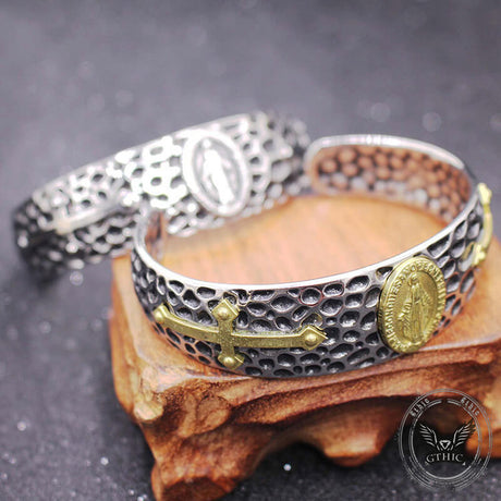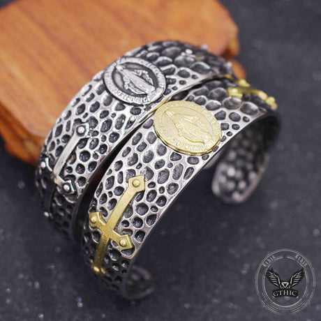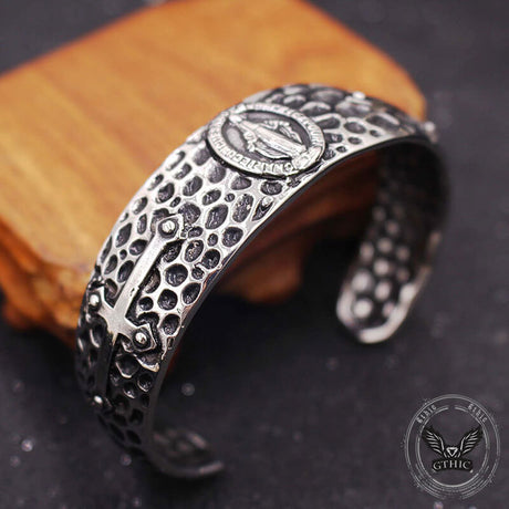 Virgin Mary Angel Cross Stainless Steel Cuff Br...